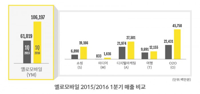 이상혁 옐로모바일 대표는 "지난 분기에 이어 이번 1분기에도 1000억원대 매출을 달성하며 견조한 성장이 지속되고 있다"며 "최근 내부적으로 경영관리 체계화 및 역량 강화, 수익성 강화에 박차를 가하고 있는 만큼 향후 더욱 좋은 성과를 만들어 갈 것"이라고 말했다.옐로모바일 1분기 실적표 <자료제공=옐로모바일>