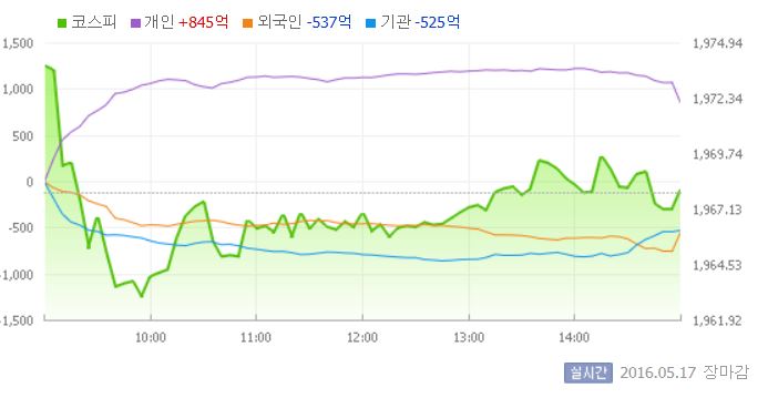 이날 코스피는 국제유가 상승 소식에 오름세로 장을 시작했다. 그러나 기관과 외국인의 매도로 1960선 초반으로 하락했다가 다시 상승세로 방향을 바꿨다.