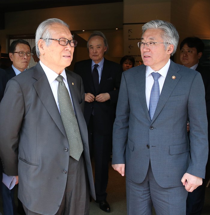 | △ 민경갑 대한민국예술원 회장과 대화하는 김종적 장관 |