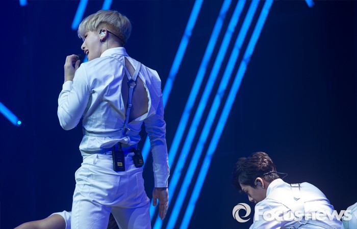(서울=포커스뉴스) 18일 오후 서울 광진구 예스24 라이브홀에서 열린 아이돌그룹 몬스타X의 세번째 미니앨범 'THE CLEAN PART. 1 LOST' 발표 쇼케이스에 참석한 멤버들이 무대를 선보이고 있다.