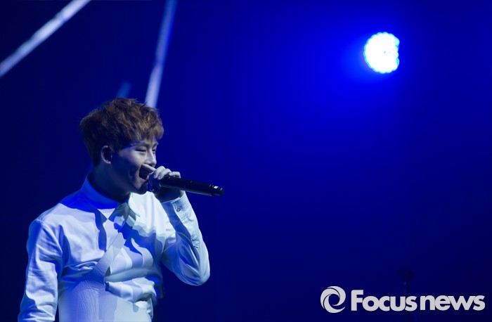 (서울=포커스뉴스) 18일 오후 서울 광진구 예스24 라이브홀에서 열린 아이돌그룹 몬스타엑스의 세번째 미니앨범 'THE CLEAN PART. 1 LOST' 발표 쇼케이스에 참석한 멤버 주헌이 신곡 'Ex girl'의 무대를 선보이고 있다.