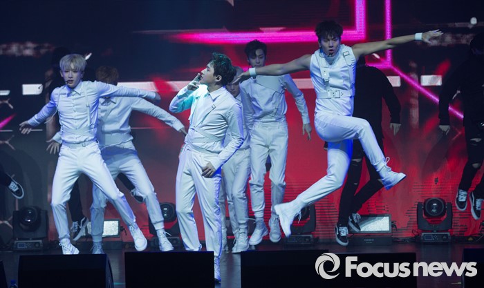 (서울=포커스뉴스) 18일 오후 서울 광진구 예스24 라이브홀에서 열린 아이돌그룹 몬스타X의 세번째 미니앨범 'THE CLEAN PART. 1 LOST' 발표 쇼케이스에 참석한 멤버들이 무대를 선보이고 있다.