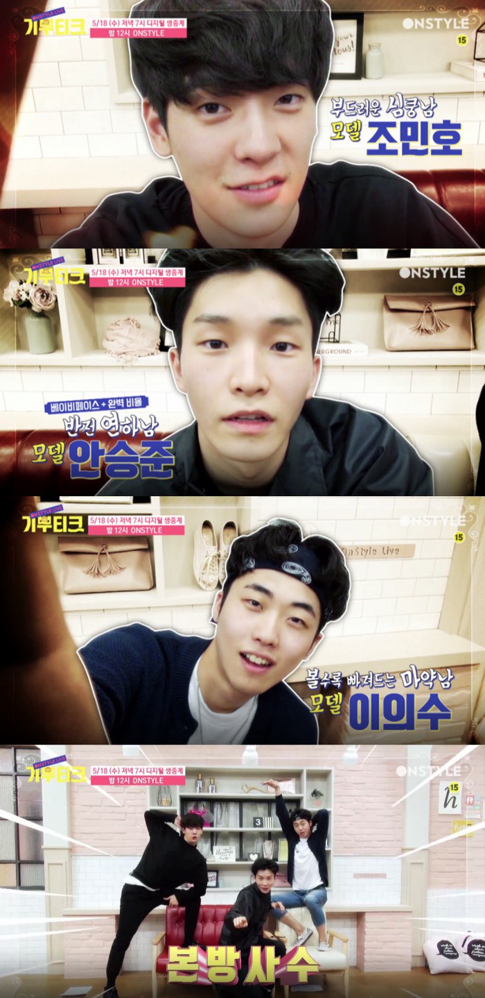 조민호, 안승준, 이의수는 최근 패션계에서 주목받는 남성 모델들이다. 조민호는 온스타일 '스타일 로그 2014' 등에서 진행 경험을 가지고 있다. 안승준은 2016 F/W 서울패션위크에서 11차례 무대에 섰다. 지난달 22일 홍콩에서 열린 패션브랜더 디올 2016 겨울컬렉션 라이브 쇼에 나서기도 했다. 이의수는 모델 활동 뿐 아니라 행사 DJ로도 나서는 등 다양한 영역에서 활동하고 있다.