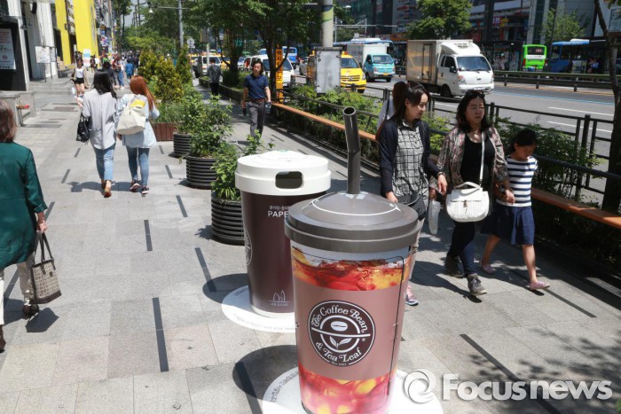 새로 설치되는 재활용 분리수거함에는 재활용 쓰레기만 버릴 수 있다. 구는 높이 120cm, 폭 70cm의 투명 아이스커피 컵 모양과 종이컵 모양으로 재활용 분리수거함을 설치할 예정이다.