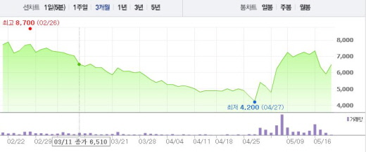 썬코어와 케이티롤 측은 “최 회장이 이 면담 자리에 함께 동석했다”며 “총 사업 규모가 수백조원으로 추정되는 초대형 신도시 건설에 썬코어와 케이티롤이 한국 대표 주자로 참여하게 된 것에 의미가 있다”고 설명했다.썬코어 주가흐름<사진출처=네이버 캡쳐>