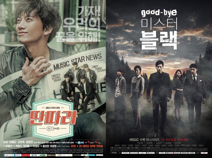 '굿바이 미스터 블랙'은 19일 종영을 앞두고 있어 오는 25일부터는 후속작 '운빨로맨스'가 치열한 시청률 경쟁에 뛰어들 전망이다.수목극 '딴따라(왼쪽)'와 '굿바이 미스터 블랙'의 시청률 경쟁이 치열하다. <사진출처=SBS,MBC>