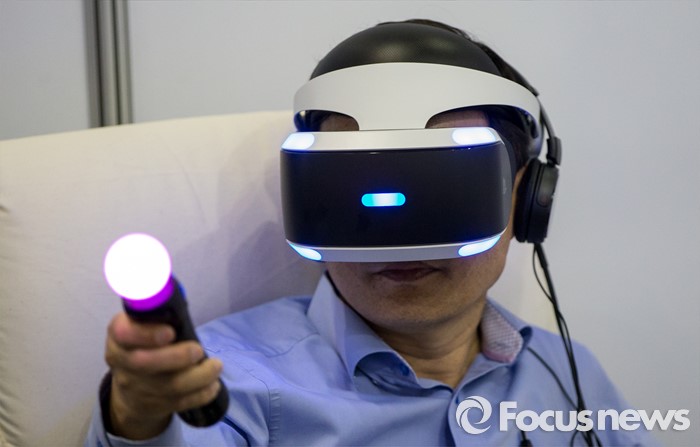 (고양=포커스뉴스) 19일 오후 경기 고양시 킨텍스 제1전시관에서 열린 2016 플레이엑스포를 찾은 관람객이 가상현실 게임을 즐기고 있다.