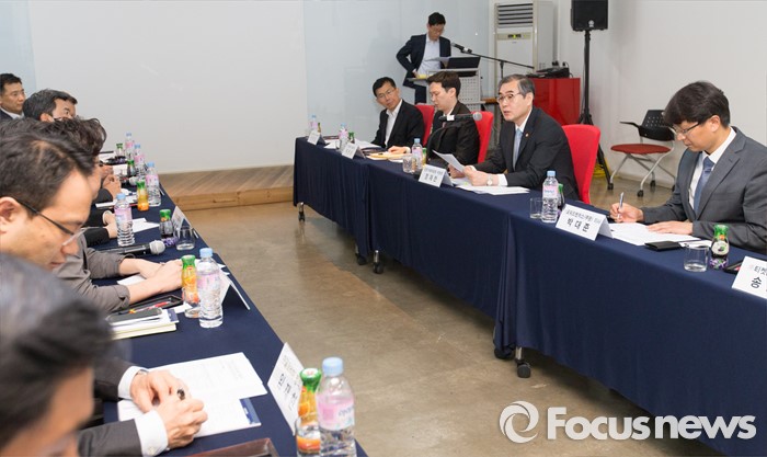 (서울=포커스뉴스) 정재찬 공정거래위원회 위원장이 19일 오후 서울 강남구 위메프 본사에서 열린 '전자상거래 업계대표 간담회'에 참석해 모두발언 하고 있다.
