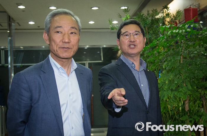 | △ 식사모임에 참석하는 김종훈과 김학용 |