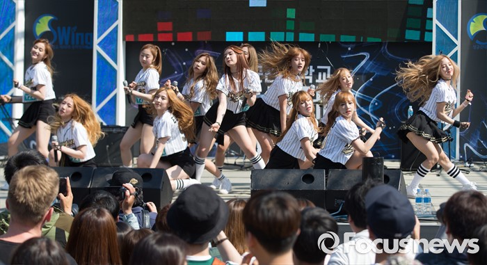 (서울=포커스뉴스) 19일 오후 서울 종로구 성균관대 캠퍼스에서 걸그룹 우주소녀의 멤버들이 'Y24 스쿨어택' 행사에 참여하고 있다.