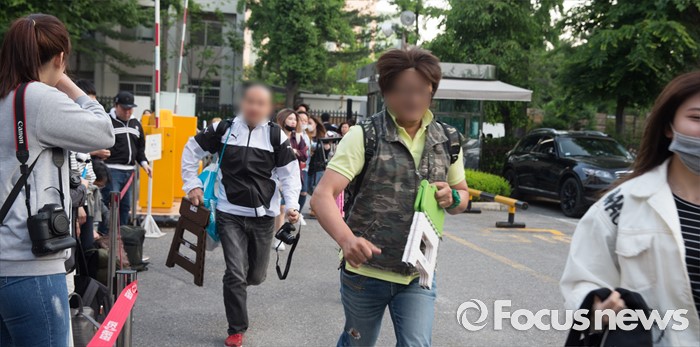 (서울=포커스뉴스) 20일 오전 서울 영등포구 KBS에서 생방송 뮤직뱅크 리허설에 참여하는 가수들을 촬영하기 위해 팬들이 포토라인으로 이동하고 있다.