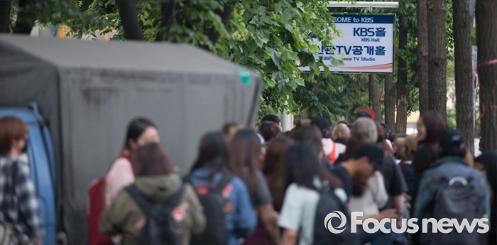 (서울=포커스뉴스) 20일 오전 서울 영등포구 KBS에서 생방송 뮤직뱅크 리허설에 참여하는 가수들을 촬영하기 위해 팬들이 모여있다.