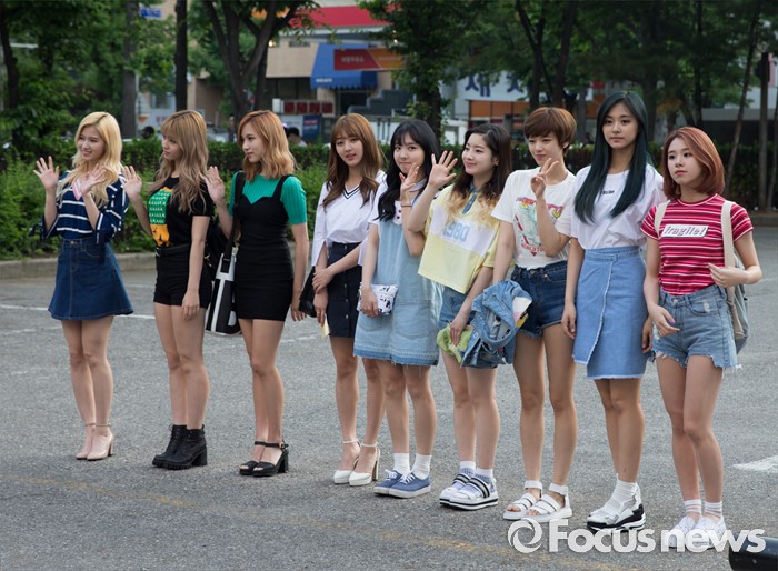 (서울=포커스뉴스) 20일 오전 서울 영등포구 KBS에서 걸그룹 트와이스의 멤버들이 생방송 뮤직뱅크 리허설에 참여하기 위해 이동하던 중 포토타임을 갖고 있다.