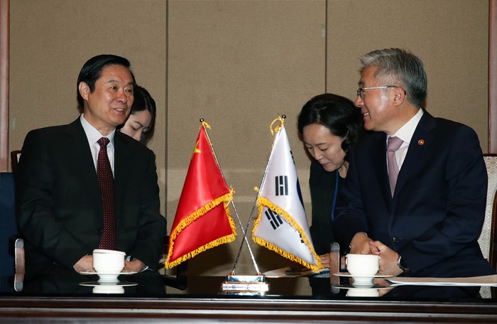 (서울=포커스뉴스) 김종덕(오른쪽) 문화체육관광부장관이 23일 서울 중구 롯데호텔에서 문화체육관광부와 중국 국무원신문판공실이 주최하고 21세기 한중교류협회가 주관하는 '제8차 한중 고위언론인 포럼’에 참석해, 류치바오 중국공산당 중앙 선전부장과 면담을 하고 있다. <사진제공=문화체육관광부>