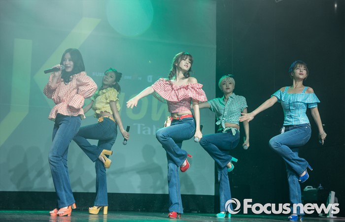 (서울=포커스뉴스) 23일 오전 서울 마포구 하나투어 브이홀에서 열린 걸그룹 타히티의 '알쏭달쏭' 쇼케이스에 참여한 멤버들이 무대를 선보이고 있다.