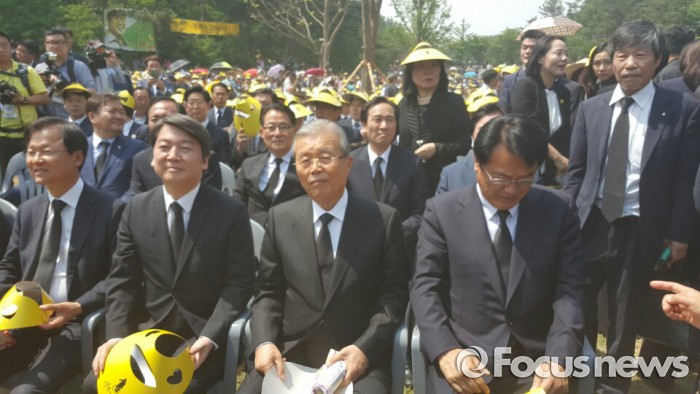 안 대표가 사저를 나와 추도식 장소로 이동하는 길에서도 몸싸움과 고성·욕설은 계속됐다. 반면 심상정 정의당 상임대표·노회찬 원내대표에겐 추모객들이 환호와 박수를 보내 상반된 모습을 보였다.최선환 기자 2016.05.23