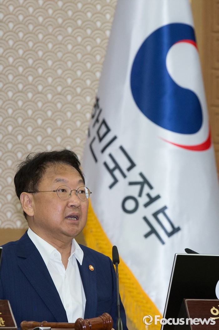 (세종=포커스뉴스) 유일호 경제부총리 겸 기획재정부장관이 24일 오전 세종시 정부세종청사 국무회의장에서 서울-세종 영상회의로 열린 국무회의를 주재하고 있다.