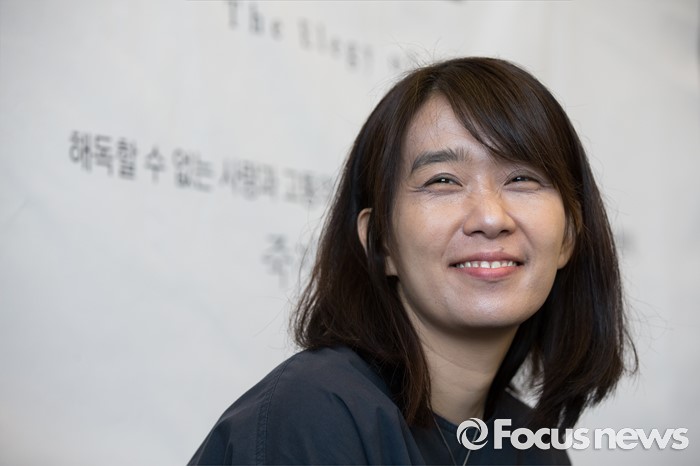 (서울=포커스뉴스) 소설' 채식주의자'로 세계 3대 문학상인 맨부커상을 수상한 한강이 24일 오전 서울 마포구 카페 꼼마에서 열린 신작소설 '흰' 출간 기자간담회에서 질문에 답하고 있다.