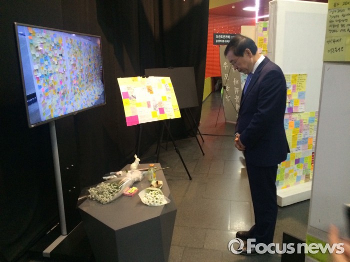 이날 오후 1시20분쯤 서울시청 지하 1층 시민청에 마련된 '강남역 인근 화장실 살인사건' 피해자 추모공간에 방문한 박원순 서울시장도 이 자리에서 "화장실 남·녀 분리, 추모공간 보존 등이 대책이 될 수 있다"고 말했다.