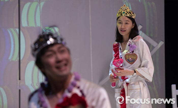 (서울=포커스뉴스) 24일 오후 서울 종로구 CJ아지트 대학로점에서 열린 연극 '크레센도 궁전' 프레스콜에 참여한 배우 김소진(왼쪽)이 주요장면을 시연하고 있다.