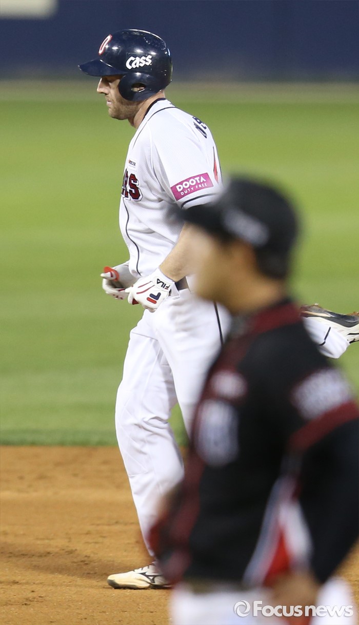(서울=포커스뉴스) 24일 서울 잠실구장에서 열린 2016프로야구 kt-두산 경기 4회말 2사 3루에서 두산 에반스가 중월 2점 홈런을 치고 베이스를 돌고 있다.