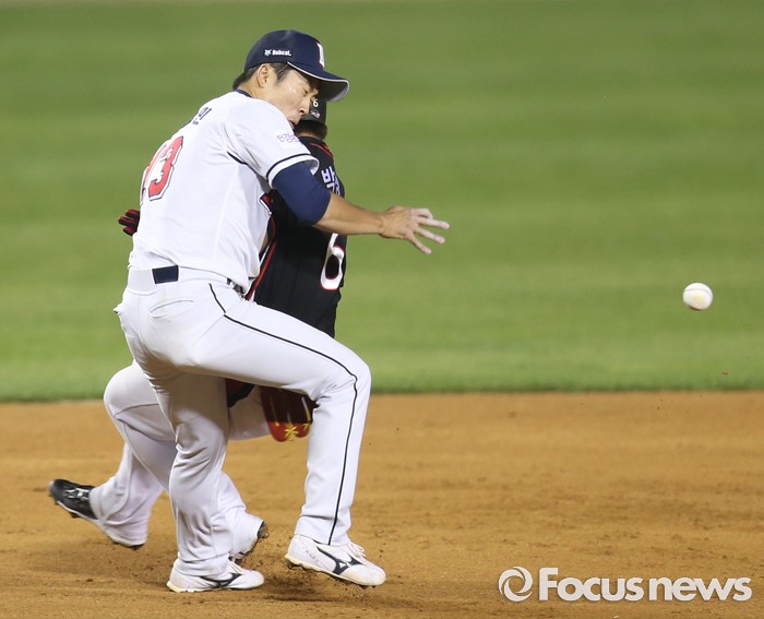 충돌하는 박경수와 허경민
