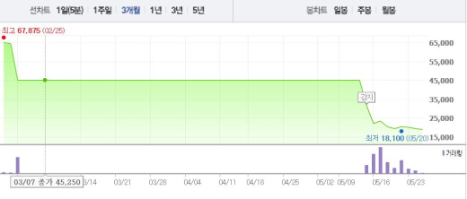 이는 16일 2만2200원을 기록했던 주가와 비교했을 때 13.6% 하락한 수치다.
