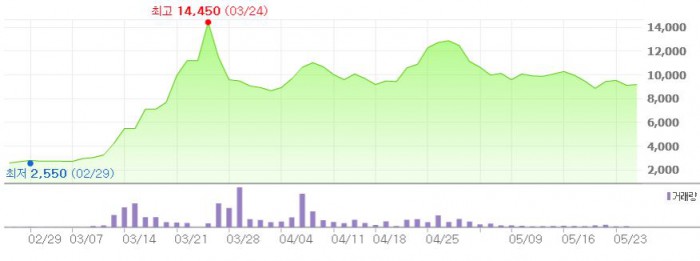 25일 오전 9시10분 현재 화이브라더스 주가는 전일 대비 0.22% 오른 9150원을 기록 중이다.최근 3개월간 화이브라더스 주가 추이 <그래픽출처=네이버>