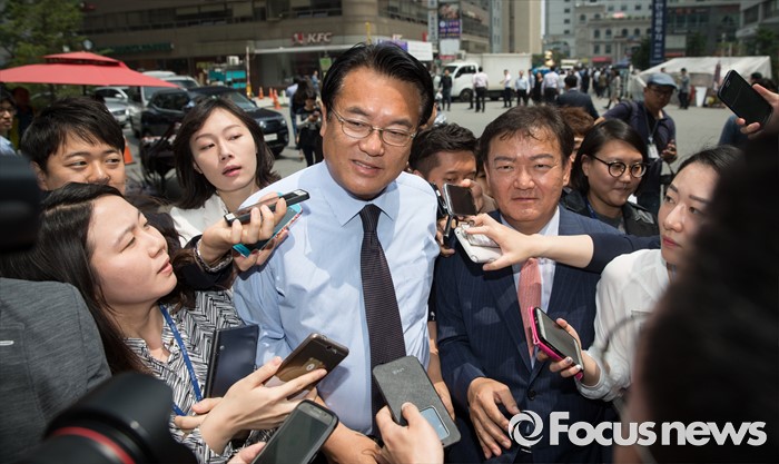 (서울=포커스뉴스) 정진석 새누리당 원내대표가 25일 오전 서울 여의도 새누리당 당사 앞에서 취재진들의 질문을 받고 있다.