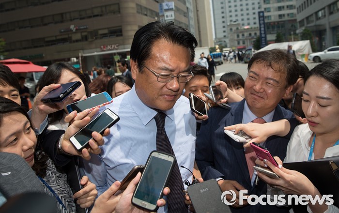 (서울=포커스뉴스) 정진석 새누리당 원내대표가 25일 오전 서울 여의도 새누리당 당사 앞에서 취재진들의 질문을 받고 있다.