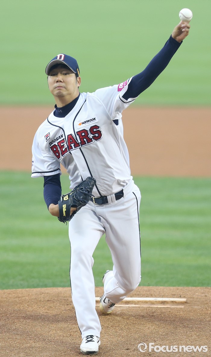 (서울=포커스뉴스) 25일 서울 잠실구장에서 열린 2016프로야구 kt-두산 경기에서 1회초 두산 선발투수 장원준이 투구하고 있다.