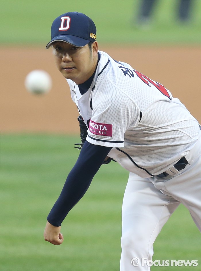 (서울=포커스뉴스) 25일 서울 잠실구장에서 열린 2016프로야구 kt-두산 경기에서 1회초 두산 선발투수 장원준이 투구하고 있다.
