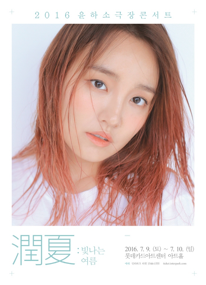 소속사 C9엔터테인먼트는 26일 “윤하가 오는 7월 9,10일 양일간 서울 마포구 롯데카드아트센터 아트홀에서 2016 소극장 콘서트 ‘윤하(潤夏)’를 개최한다”고 전했다.