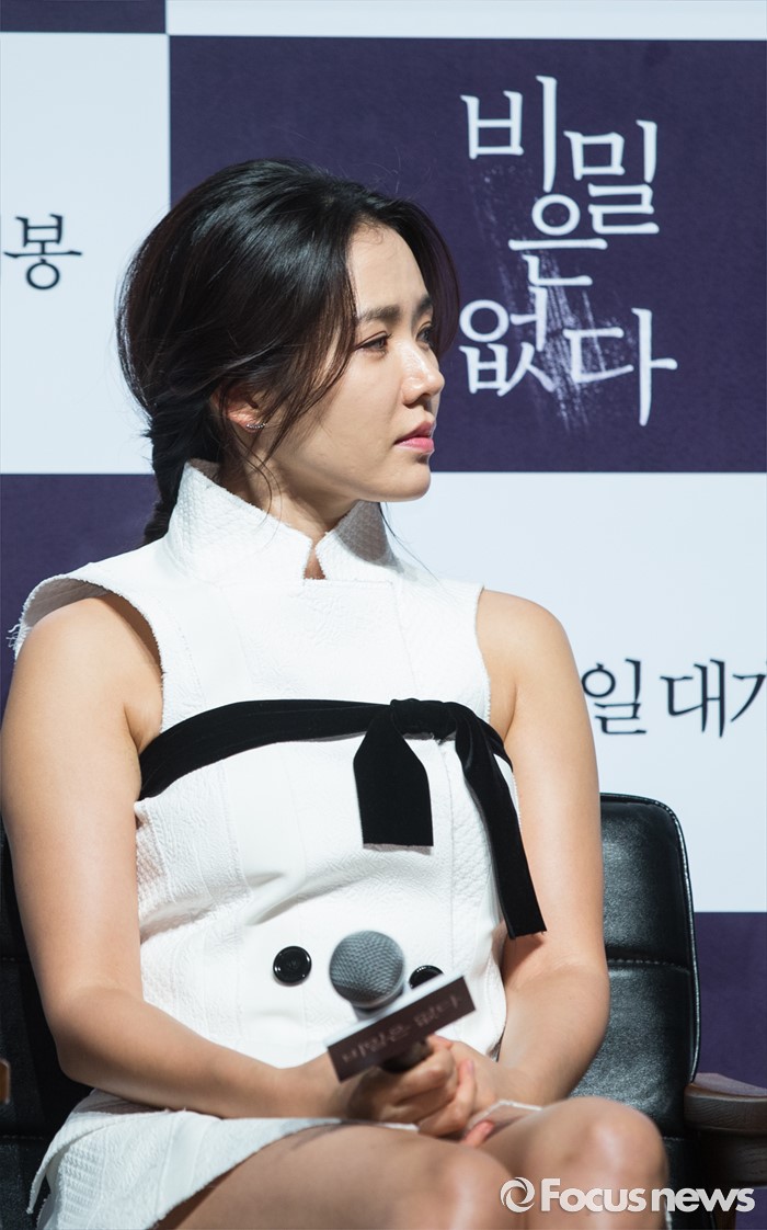 (서울=포커스뉴스) 26일 오전 서울 강남구 압구정 CGV에서 열린 영화 '비밀은 없다' 제작보고회에 참석한 배우 손예진이 취재진에게 질문을 받고 있다.