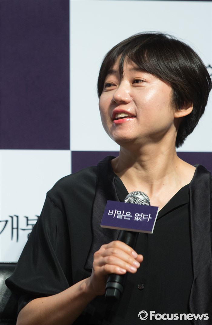 손예진·김주혁 주연의 '비밀은 없다'는 선거를 앞둔 정치인 부부가 딸이 실종되면서 겪은 15일간의 사건을 그려낸 미스터리 스릴러 영화다.(서울=포커스뉴스) 26일 오전 서울 강남구 압구정 CGV에서 열린 영화 '비밀은 없다' 제작보고회에 참석한 이경미 감독이 취재진에게 질문을 받고 있다. 2016.05.26 김유근 기자