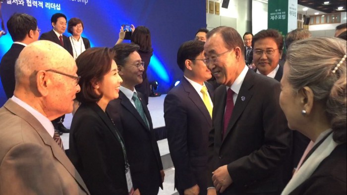 반 총장은 25일 제주 롯데호텔에서 열린 관훈포럼 행사에서 "기후변화협약 협정을 체결하는데 10년간 남다른 고생을 하고 노력했다"고 밝혔다. 반 총장은 지난해 12월 파리에서 열린 유엔기후변화협약(UNFCCC) 당사국총회(COP21) 고위급회의에서 '파리 기후변화협정'('파리협정')을 타결하는데 힘썼다. 이후 '파리협정 고위급 서명식'을 직접 주재해 '신기후체제'를 출범시켰다.