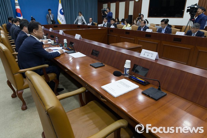 (서울=포커스뉴스) 26일 오후 서울 종로구 서울정부청사에서 열린 재정전략협의회가 홍윤식 행정자치부 장관의 자리가 빈 채로 진행되고 있다.