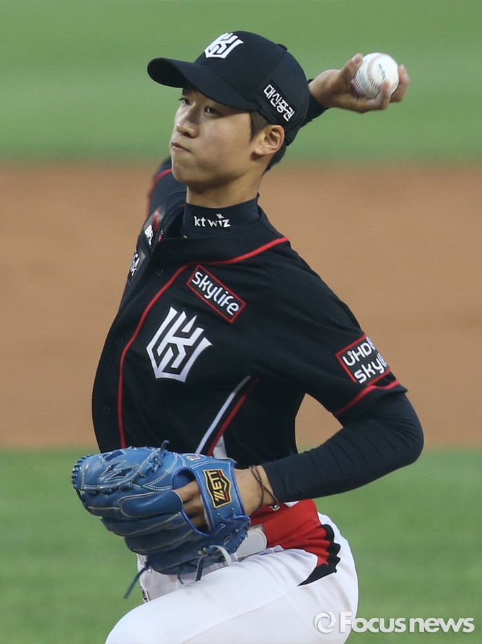 (서울=포커스뉴스) 26일 서울 잠실구장에서 열린 2016프로야구 kt-두산 경기 2회말 1사 만루에서 kt 투수 엄상백이 구원 등판해 투구하고 있다.