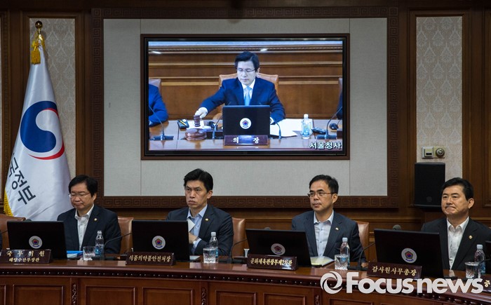 (서울=포커스뉴스) 27일 오전 서울 종로구 정부서울청사에서 열린 임시 국무회의에서 황교안 국무총리가 회의 종료를 알리며 의사봉을 두드리고 있다.