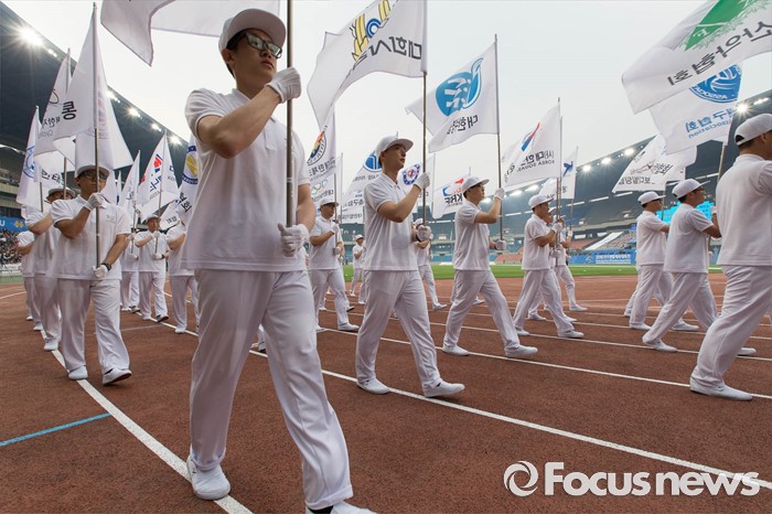 (서울=포커스뉴스) 2016 전국생활체육대축전 개막식이 열린 27일 오후 서울 송파구 잠실 올림픽주경기장에서 개막 축하 퍼레이드가 진행되고 있다.