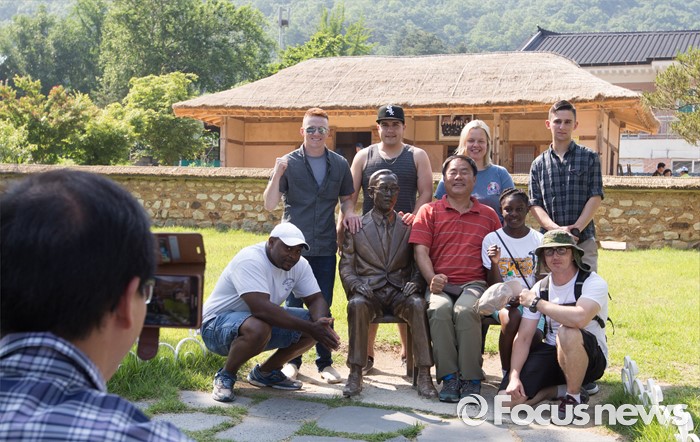 (음성=포커스뉴스) 반기문 UN사무총장이 김종필 전 국무총리를 예방한 28일 오후 충북 음성군 원남면 반기문 생가를 찾은 주한미군들이 기념촬영 하고 있다.