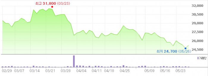 조 연구원은 "지속되는 수요 발생으로 실질적인 인상 영향은 2~3분기쯤 부각될 것으로 전망된다"고 설명했다.하이트진로 주가 추이 <그래픽출처=네이버>