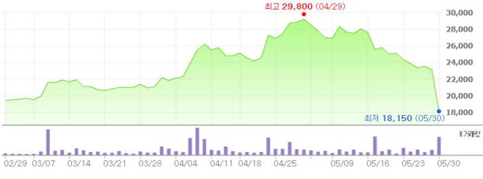 예정 발행가는 1만7150원이다. 신주의 상장 예정일은 8월24일이다.주가 추이 <그래픽출처=네이버>