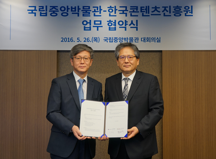 (서울=포커스뉴스) 한국콘텐츠진흥원과 국립중앙박물관은 지난 26일'콘텐츠산업 발전과 전통 문화 활용 창작 활성화'를 위한 업무협약(MOU)을 체결했다.
