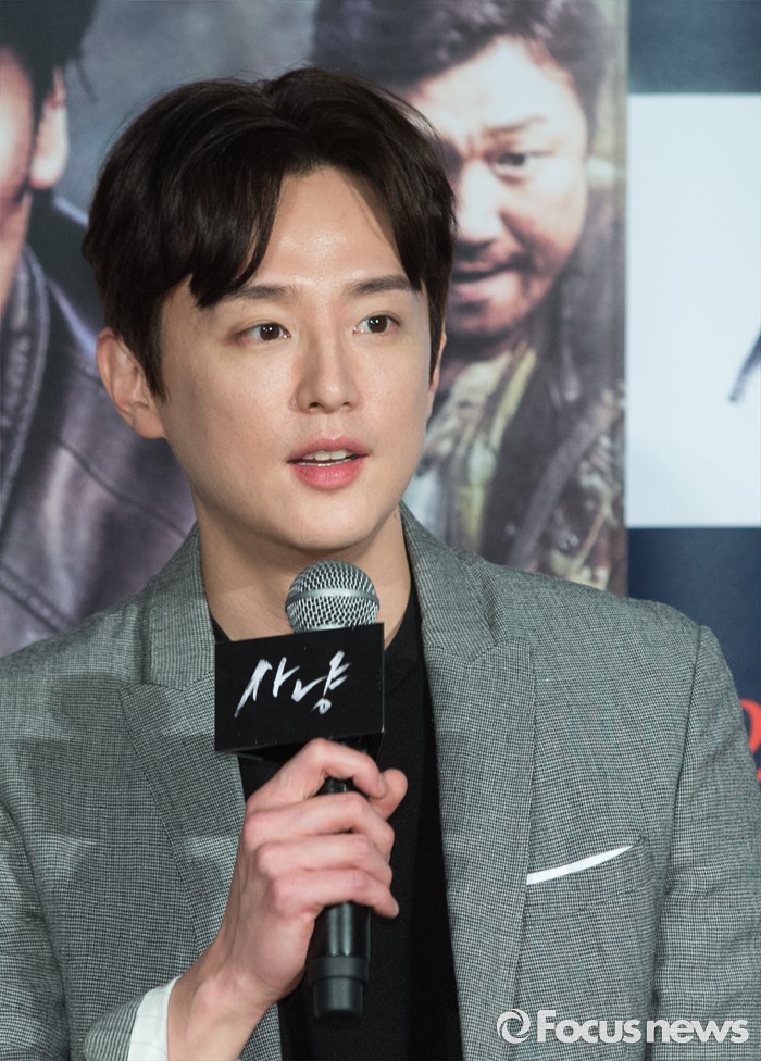 (서울=포커스뉴스) 30일 오전 서울 광진구 건대입구 롯데시네마에서 열린 영화 '사냥' 제작보고회에 참석한 배우 권율이 인사말을 하고 있다.