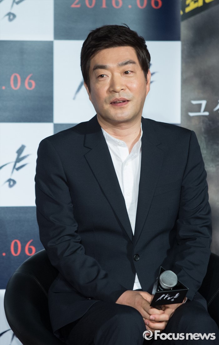 (서울=포커스뉴스) 30일 오전 서울 광진구 건대입구 롯데시네마에서 열린 영화 '사냥' 제작보고회에 참석한 배우 손현주가 질문을 듣고 있다.