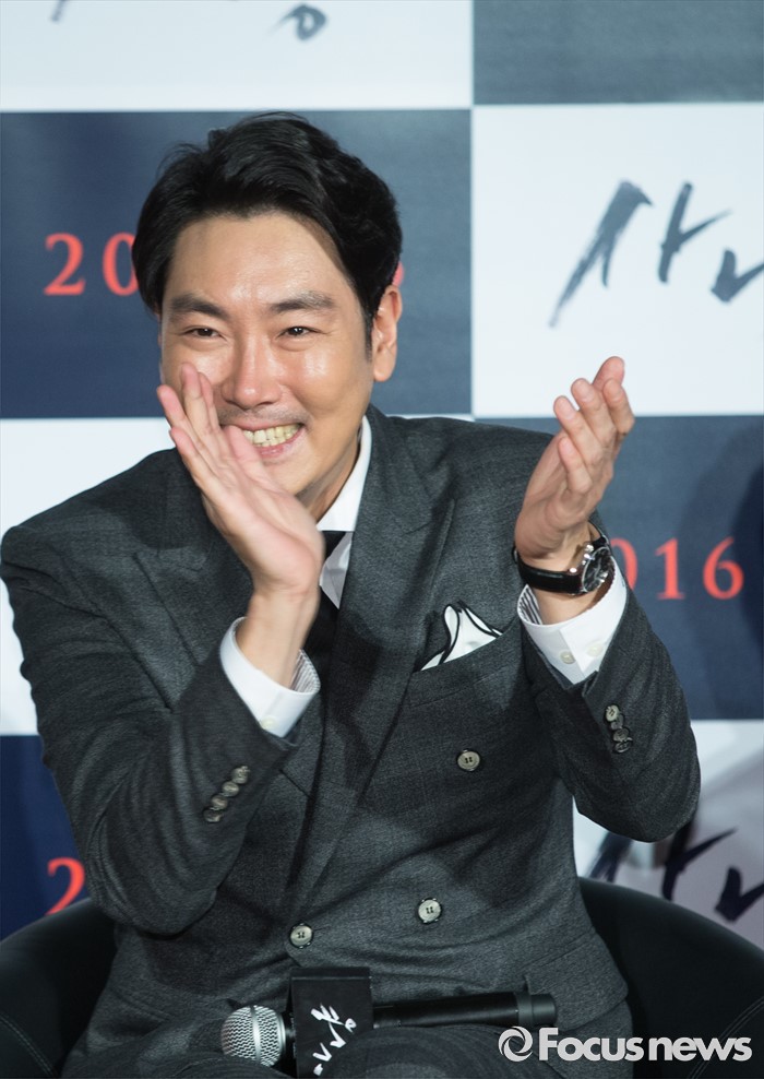 (서울=포커스뉴스) 30일 오전 서울 광진구 건대입구 롯데시네마에서 열린 영화 '사냥' 제작보고회에 참석한 배우 조진웅이 환한 미소를 짓고 있다.
