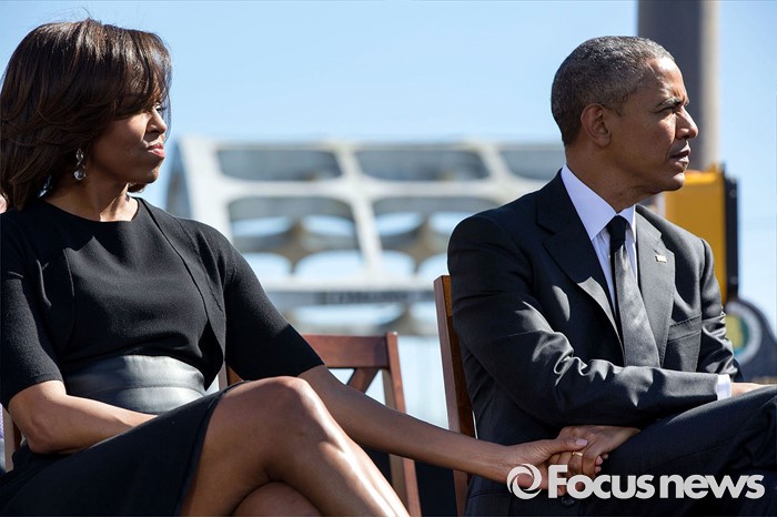 (서울=포커스뉴스) 2015년 3월 오바마 대통령과 미셸 오바마 여사가 '셀마-몽고메리 행진' 50주년 기념식에 참석하고 있다. 셀마-몽고메리 행진은 미국 흑인 참정권 운동의 상징적 사건으로, 1965년 흑인들의 참정권을 요구하는 시위대가 셀마에서 몽고메리까지 87km를 행진한 것을 말한다. <사진출처=백악관 공식홈페이지 갈무리>
