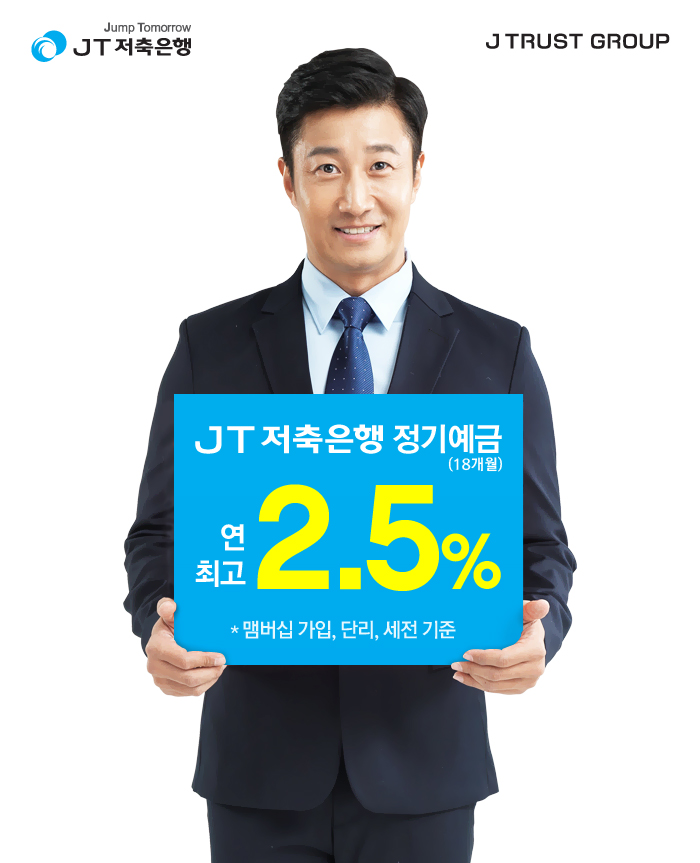 (서울=포커스뉴스) J트러스트 그룹의 계열사 JT저축은행은 최고 연 2.5% 정기예금을 판매한다고 31일 밝혔다.
