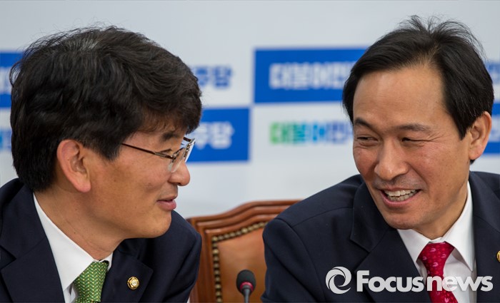| △ 환하게 웃는 더민주 원내대표-원내수석부대표 |